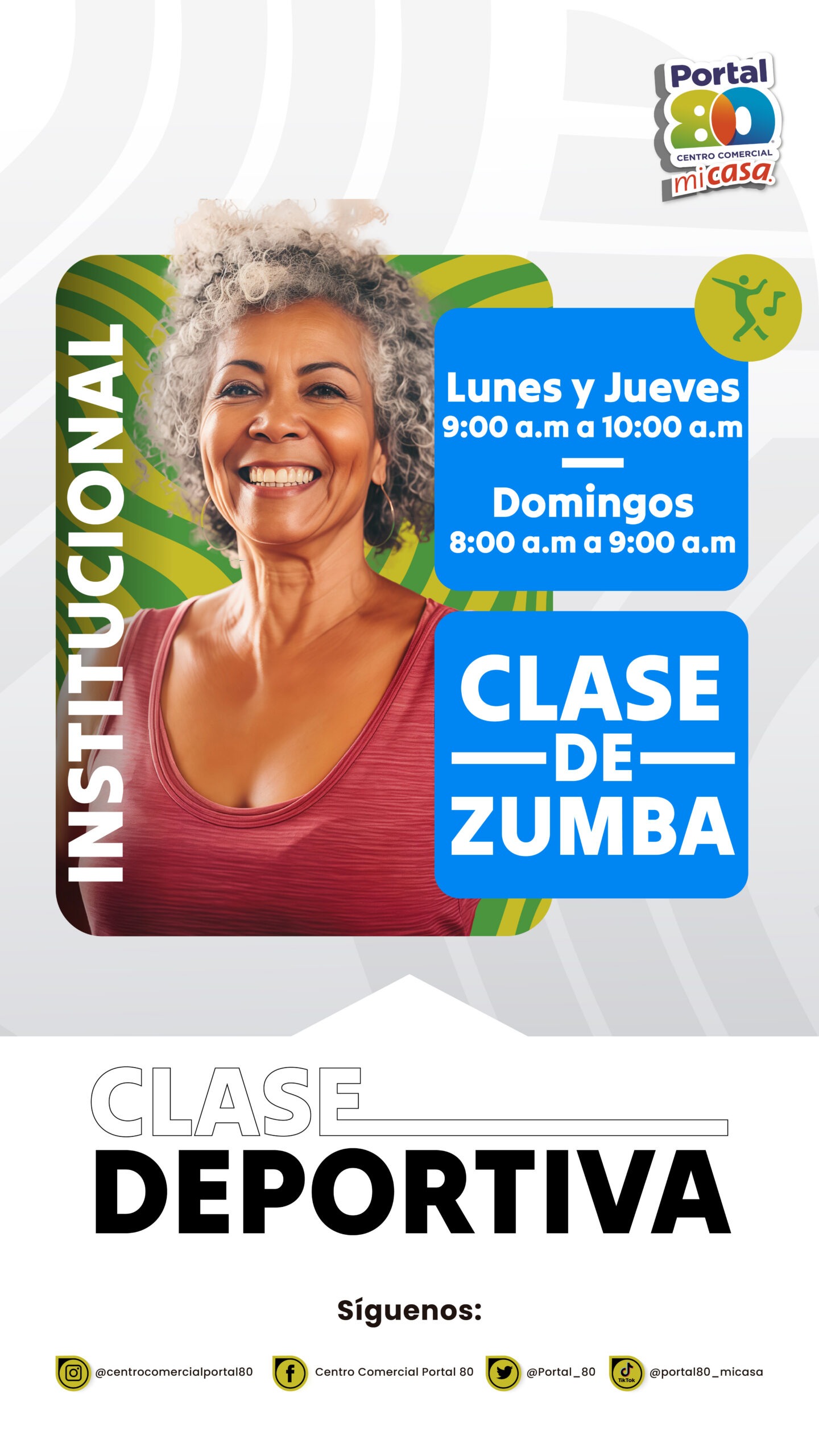 Te invitamos a disfrutar de una divertida clase de Zumba en el centro comercial, un espacio para ejercitarte, llenarte de energía y compartir en comunidad. ¡Ven y vive una experiencia diferente mientras bailas, te diviertes y cuidas tu salud!